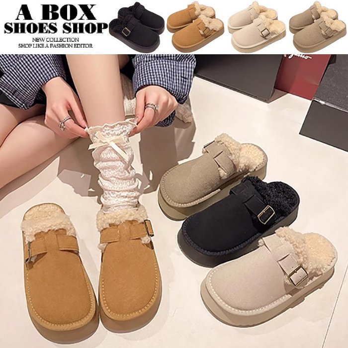 優寶購物《ubao.Tw》特貨品商城,黑貓宅配,取貨付款,格子舖*【KW122】零碼36-42加大尺碼 跟高4.5cm 厚底包頭半包拖鞋 秋冬保暖一腳蹬毛毛拖 穆勒鞋 4色 | Yahoo拍賣