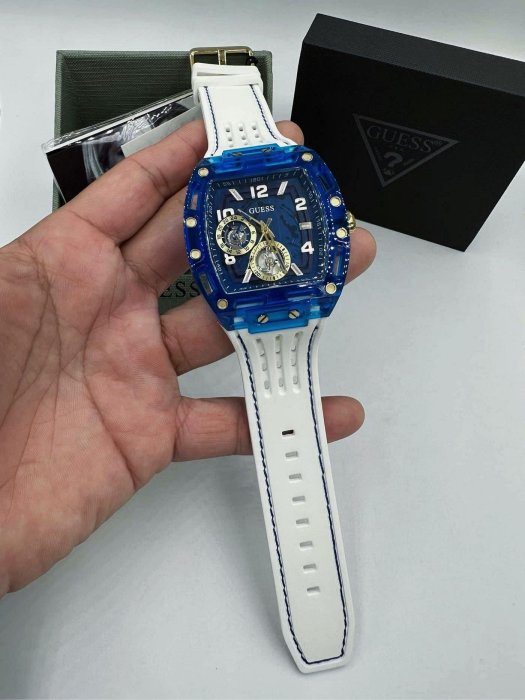 優寶購物《ubao.Tw》特貨品商城,黑貓宅配,取貨付款,現貨GUESS Phoenix 酒桶型 鏤空藍色錶盤 白色矽膠錶帶 石英 男士手錶 GW0499G6 | Yahoo拍賣