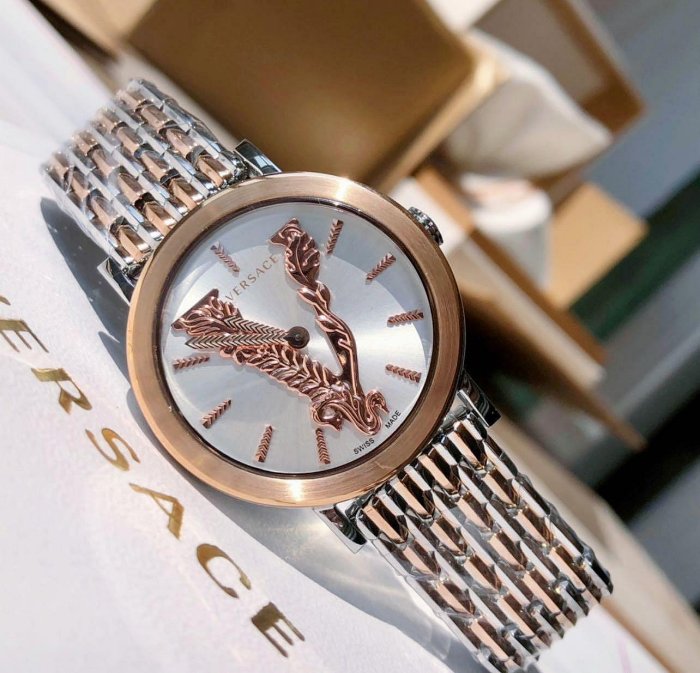 優寶購物《ubao.Tw》特貨品商城,黑貓宅配,取貨付款,現貨VERSACE Virtus 玫瑰金色立體V字浮雕 銀白色錶盤 玫瑰金色配銀色不鏽鋼錶帶 石英 女士手錶 VEHC00519 | Yahoo拍賣
