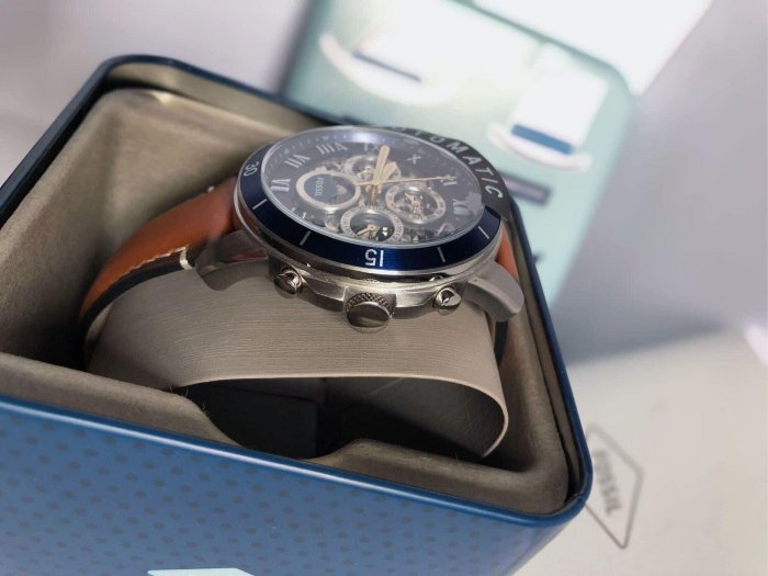優寶購物《ubao.Tw》特貨品商城,黑貓宅配,取貨付款,現貨FOSSIL Grant 藍面鏤空錶盤 棕色皮革錶帶 羅馬 自動機械錶ME3140男士腕錶 | Yahoo拍賣