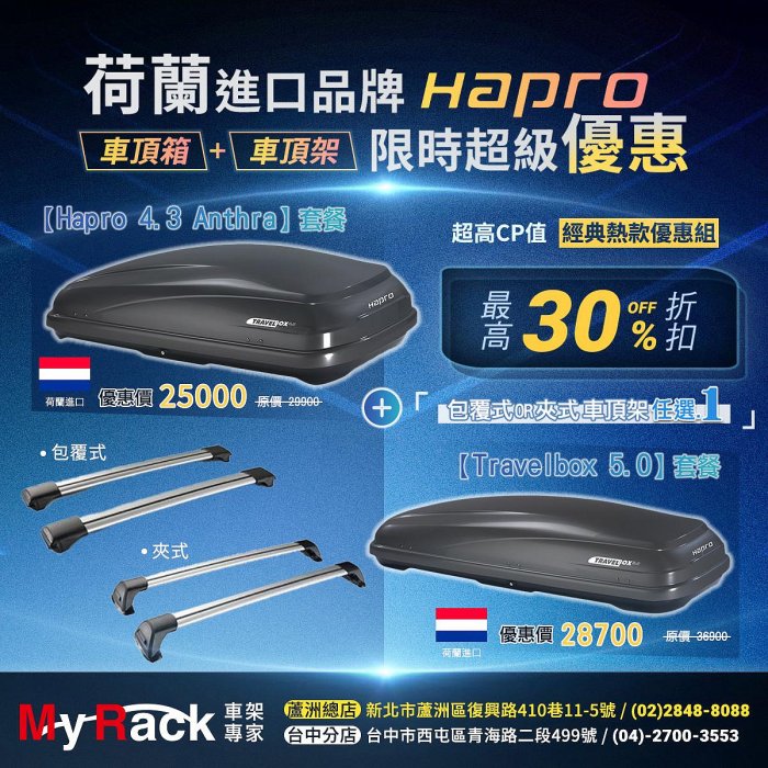 優寶購物《ubao.Tw》特貨品商城,黑貓宅配,取貨付款,【限時優惠 歐洲進口HAPRO車頂箱+車頂架】MyRack-Hapro 4.3 Anthra Travelbox 5.0 | Yahoo拍賣