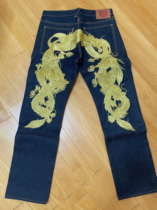 優寶購物《ubao.Tw》特貨品商城,黑貓宅配,取貨付款,RMC Martin Ksohoh 赤猿 限量版 Empire Dragon Jeans 黃金龍皇牛王 立體刺繡牛仔褲 | Yahoo拍賣