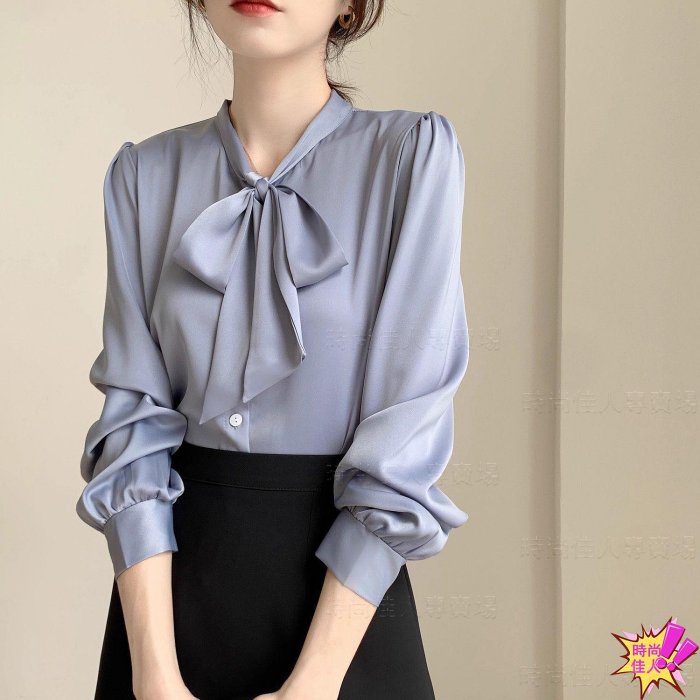 優寶購物《ubao.Tw》特貨品商城,黑貓宅配,取貨付款,時尚佳人=藍色蝴蝶結襯衫女設計感小眾時尚氣質襯衣雪紡上衣系帶春秋長袖=上衣/針織衫/毛衣/雪紡/襯衫/蕾絲/棉麻衫/亞麻衫 | Yahoo拍賣