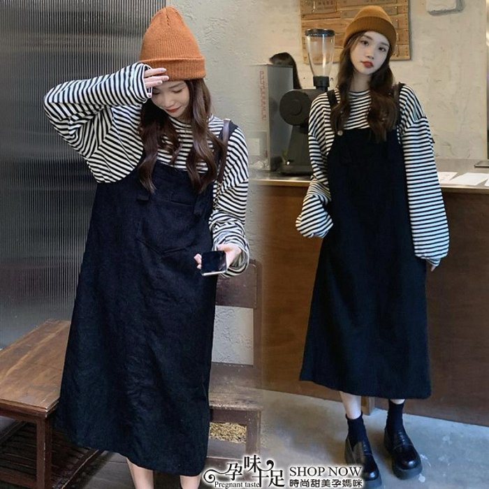 優寶購物《ubao.Tw》特貨品商城,黑貓宅配,取貨付款,韓版時尚條紋上衣背心裙 兩件套孕婦洋裝 套裝【CCH501320】孕味十足 孕婦裝 | Yahoo拍賣