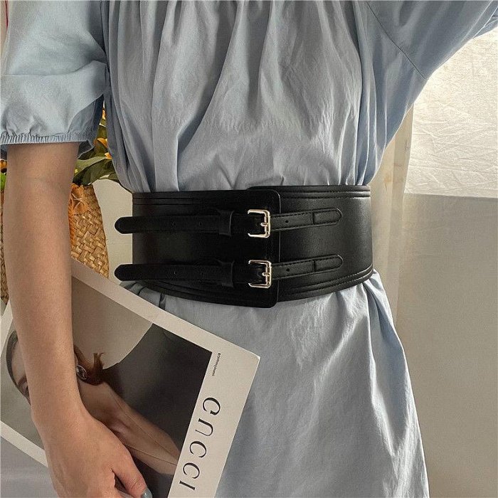 優寶購物《ubao.Tw》特貨品商城,黑貓宅配,取貨付款,ت寬腰帶ت 腰封 女歐美夏季連衣裙漢服收腰雙排針扣 皮帶 百搭女士寬版裝飾腰帶 | Yahoo拍賣