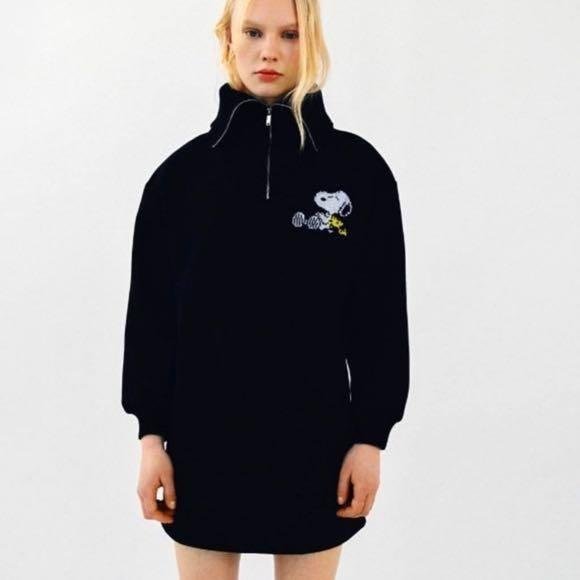 優寶購物《ubao.Tw》特貨品商城,黑貓宅配,取貨付款,Zara snoopy peanuts sweater zip dress 限量版史奴比大翻領拉鍊洋裝 長版大學T M | Yahoo拍賣