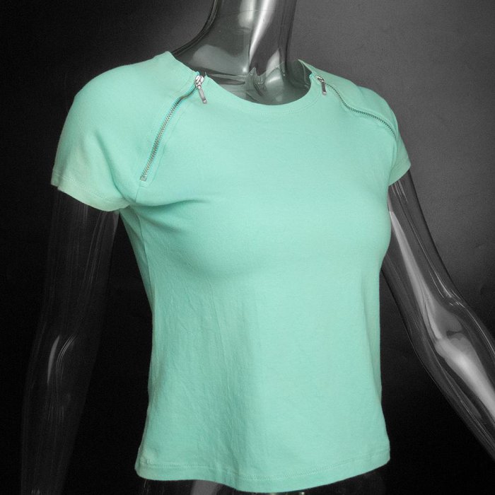 優寶購物《ubao.Tw》特貨品商城,黑貓宅配,取貨付款,法國知名品牌KOOKAI領口拉鏈造型短袖上衣 | Yahoo拍賣