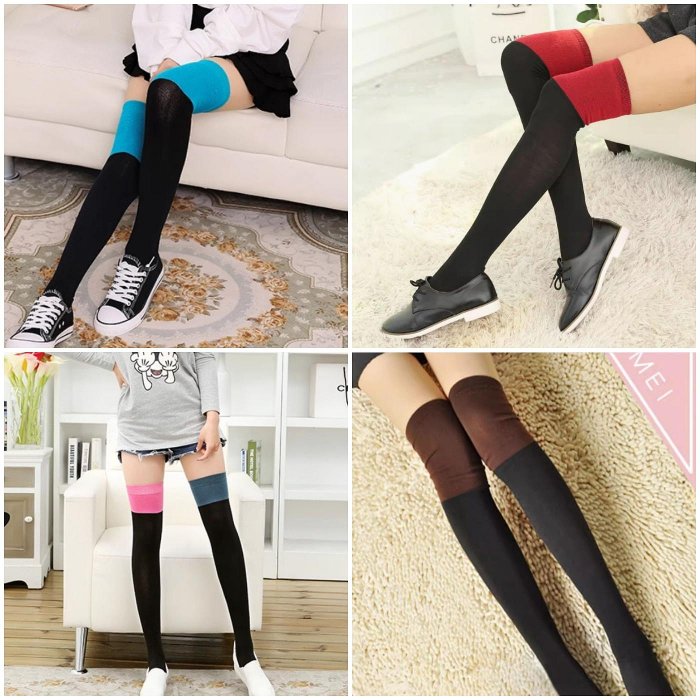 優寶購物《ubao.Tw》特貨品商城,黑貓宅配,取貨付款,長筒襪 小腿襪 膝上雙色款 膝上襪 A039 中筒襪 推推襪 黑色 咖啡 藍色 | Yahoo拍賣