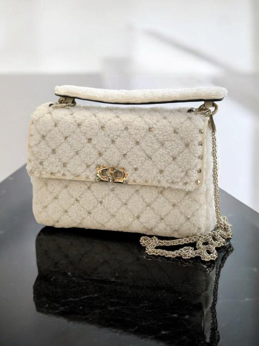 優寶購物《ubao.Tw》特貨品商城,黑貓宅配,取貨付款,☆名品寶庫☆Valentino 白色 毛毛 金鉚釘 兩用包 Rockstud Spike中號 *現貨* | Yahoo拍賣