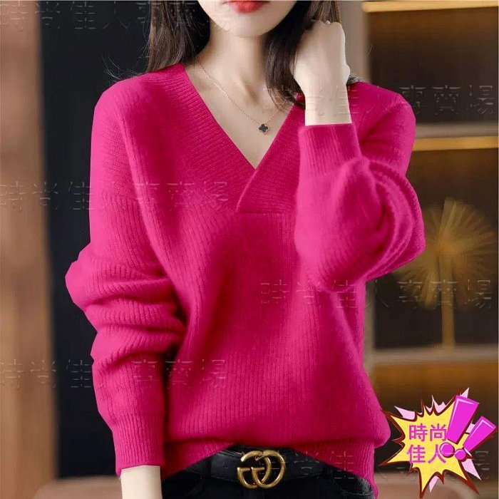 優寶購物《ubao.Tw》特貨品商城,黑貓宅配,取貨付款,時尚佳人=外穿秋冬季新款純色V領針織衫女寬松顯瘦針織套頭加厚毛衣女=上衣/針織衫/毛衣/雪紡/襯衫/蕾絲/棉麻衫/亞麻衫 | Yahoo拍賣