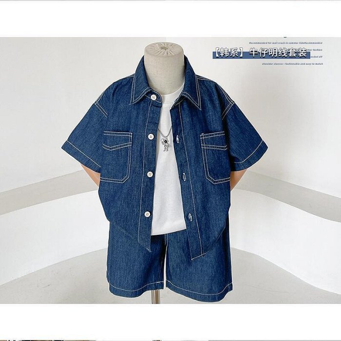 優寶購物《ubao.Tw》特貨品商城,黑貓宅配,取貨付款,優質風之谷2024夏季新款 裝 韓版明線牛仔套裝男 襯衫短袖兩件套 | Yahoo拍賣
