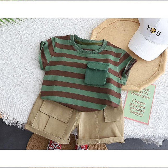 優寶購物《ubao.Tw》特貨品商城,黑貓宅配,取貨付款,好物男 夏裝套裝2024新款小 條紋T恤 工裝褲兩件套 | Yahoo拍賣