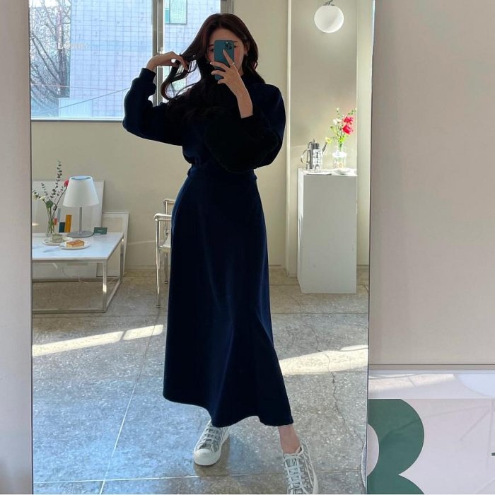 優寶購物《ubao.Tw》特貨品商城,黑貓宅配,取貨付款,Bellee 正韓 CP值高 可分開搭配 連帽短版束袖上衣+A字鬆緊彈性棉長裙 (3色) 【1129-35】 | Yahoo拍賣