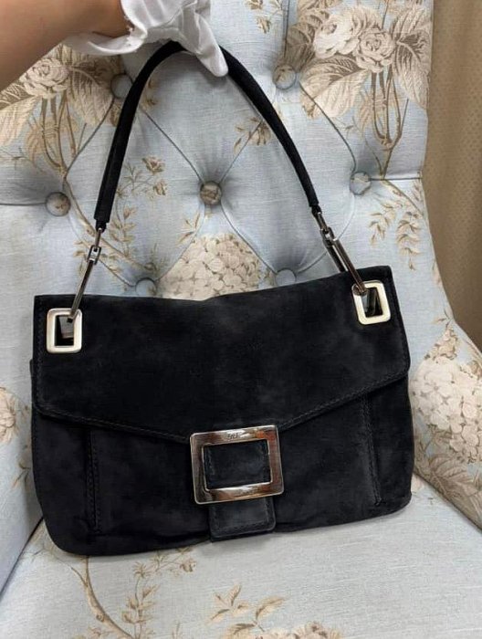 優寶購物《ubao.Tw》特貨品商城,黑貓宅配,取貨付款,Roger Vivier 大方優雅的黑色麂皮肩背包 | Yahoo拍賣