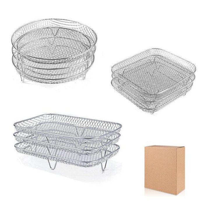 優寶購物《ubao.Tw》特貨品商城,黑貓宅配,取貨付款,【新款】跨境3層304不銹鋼空氣炸鍋烤架脫水架 燒烤網炸鍋配件烤架果蔬蒸 | Yahoo拍賣
