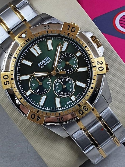 優寶購物《ubao.Tw》特貨品商城,黑貓宅配,取貨付款,FOSSIL Garrett 綠色錶盤 金色配銀色不鏽鋼錶帶 石英 三眼計時 男士手錶FS5622 | Yahoo拍賣