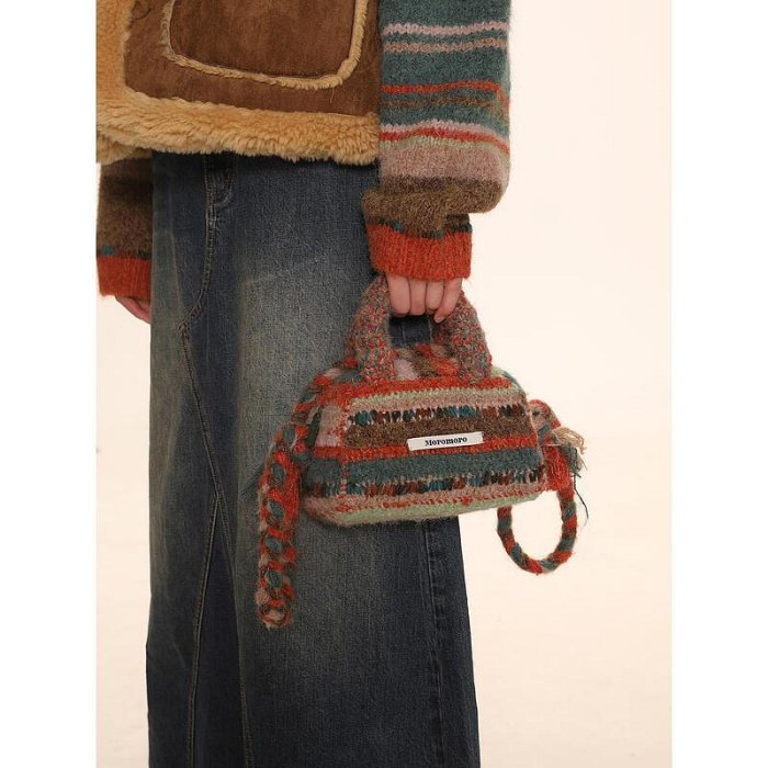 優寶購物《ubao.Tw》特貨品商城,黑貓宅配,取貨付款,Moromoro手鉤毛線條紋保齡球包包女高級感斜跨包小眾大容量手提包 | Yahoo拍賣