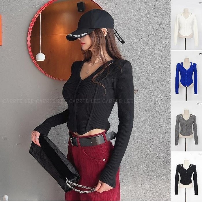 優寶購物《ubao.Tw》特貨品商城,黑貓宅配,取貨付款,【XX】女生V領螺紋鏤空鈕扣開襟針織衫上衣 炭灰 乳白 黑 藍【01.06】Carrie Lee東大門-M15005 | Yahoo拍賣