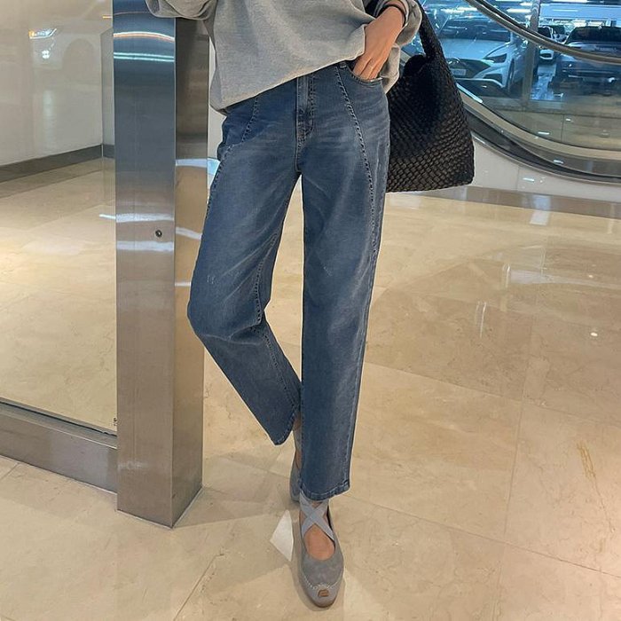 優寶購物《ubao.Tw》特貨品商城,黑貓宅配,取貨付款,/SAFA/ 正韓 對角車線美刷色舒適好彈性小男友牛仔褲【250107A057】 | Yahoo拍賣