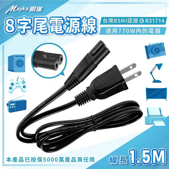 優寶購物《ubao.Tw》特貨品商城,黑貓宅配,取貨付款,【Mayka 8字尾電源線1.5M】BSMI合格 770W 7A 電源線 8字尾 8字型電線 收音機線【LD1233】 | Yahoo拍賣