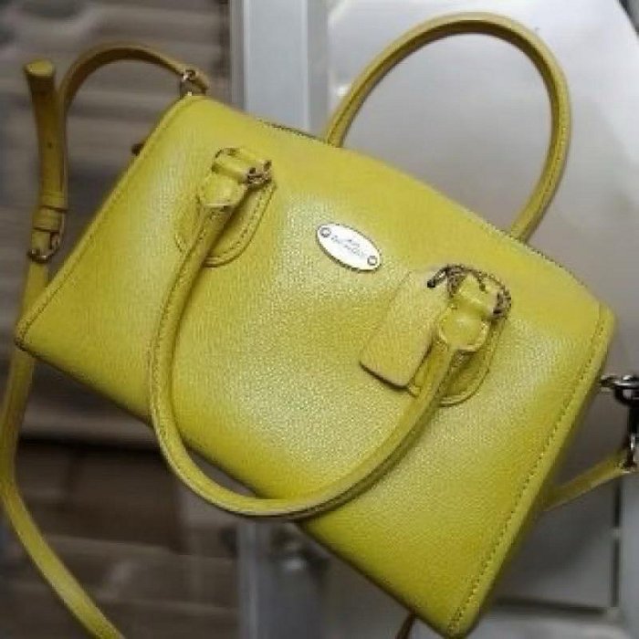 優寶購物《ubao.Tw》特貨品商城,黑貓宅配,取貨付款,極新正品COACH 螢光黃色crossgrain leather 立體真皮革/防刮 波士頓包/斜背包/手提包 兩用包 | Yahoo拍賣