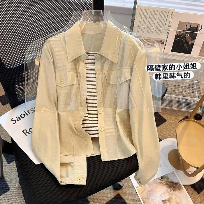 優寶購物《ubao.Tw》特貨品商城,黑貓宅配,取貨付款,【文慧】翻領短款襯衫女條紋背心夏新款休閒時尚氣質小香風防曬上衣套裝 | Yahoo拍賣