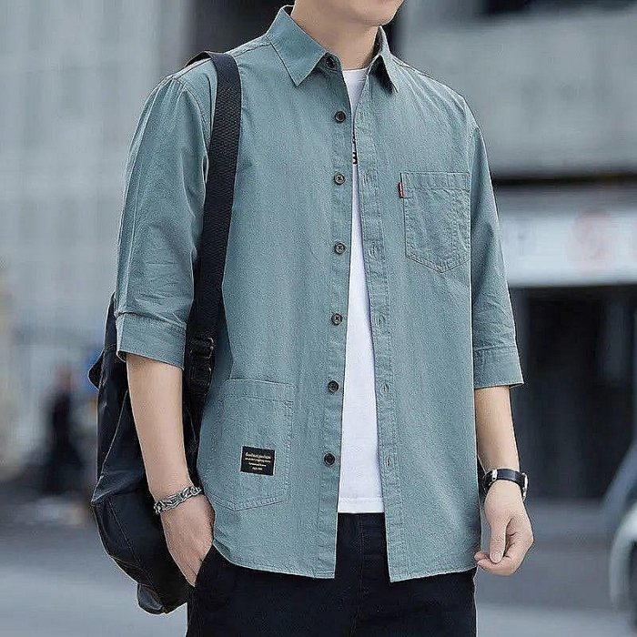 優寶購物《ubao.Tw》特貨品商城,黑貓宅配,取貨付款,夏季新款輕奢男士七分袖寬鬆大尺碼純棉休閒襯衫外套男上衣爸爸襯衫-至簡原創 | Yahoo拍賣