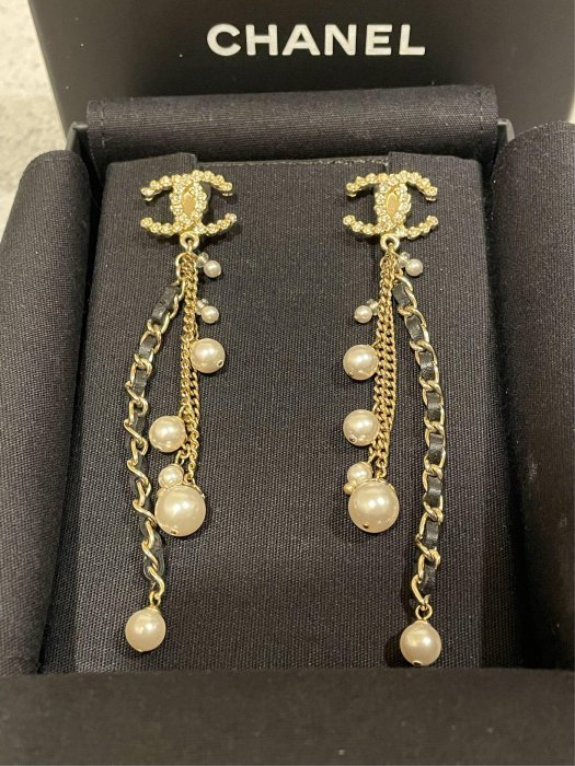 優寶購物《ubao.Tw》特貨品商城,黑貓宅配,取貨付款,Chanel香奈兒超美垂墜飾珍珠cc標誌淡金色耳夾耳環 | Yahoo拍賣