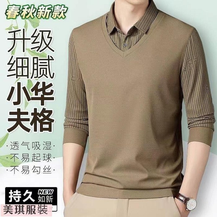 優寶購物《ubao.Tw》特貨品商城,黑貓宅配,取貨付款,假兩件襯衫 時尚休閒polo 上衣男 帥氣襯衫 長袖polo 遮肚子男裝新款薄款長袖春秋休閑款防曬爸爸裝【美琪優選】 | Yahoo拍賣