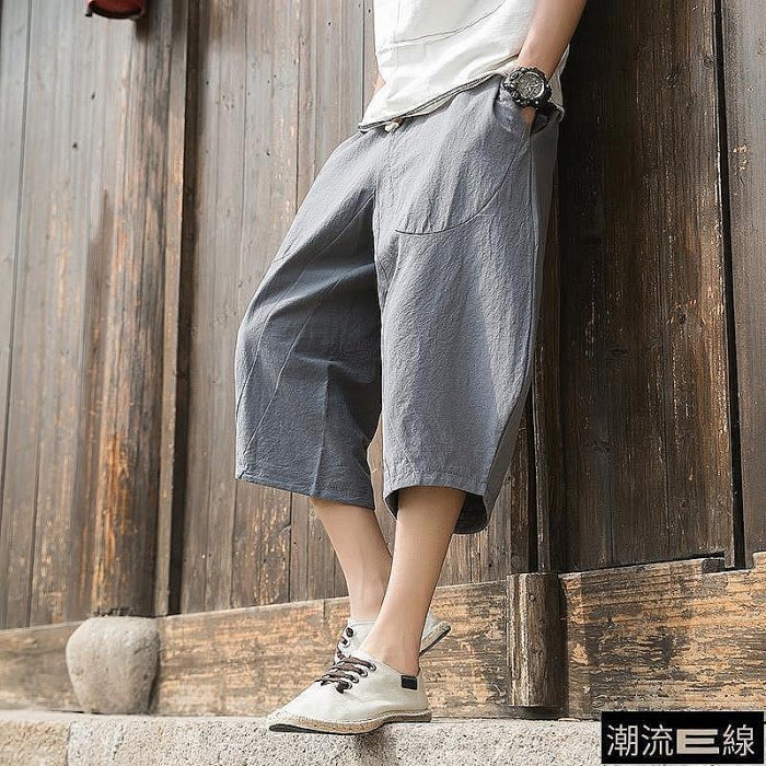 優寶購物《ubao.Tw》特貨品商城,黑貓宅配,取貨付款,夏中國風寬鬆大尺碼棉麻七分褲子男胖子短褲寬褲亞麻休閒哈倫褲潮-潮流e線 | Yahoo拍賣