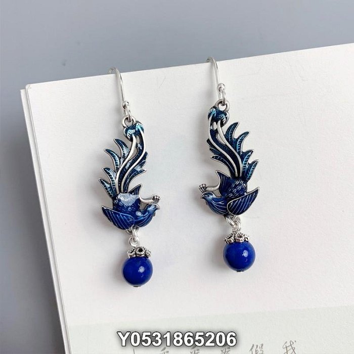 優寶購物《ubao.Tw》特貨品商城,黑貓宅配,取貨付款,925純銀藍鳳凰流蘇耳環女青金石燒藍工藝耳飾品國風夸張耳墜配飾hy | Yahoo拍賣