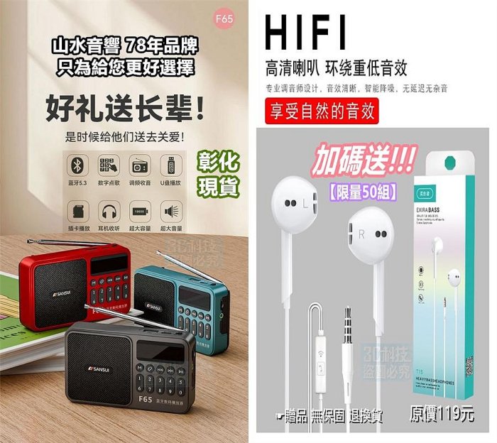 優寶購物《ubao.Tw》特貨品商城,黑貓宅配,取貨付款,SANSUI山水 2025新品F65 可擕式復古收音機 藍牙5.3 MP3播放機 FM+TF卡+U盤+耳 | Yahoo拍賣