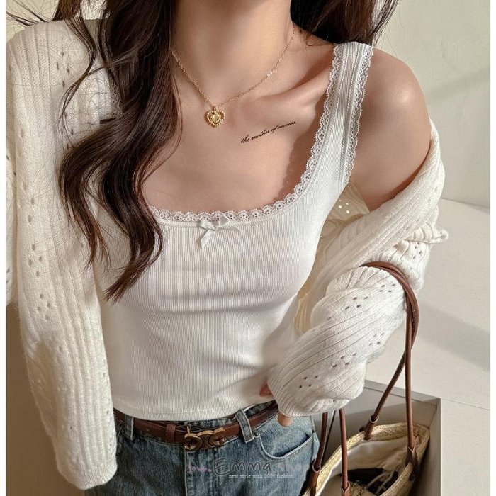 優寶購物《ubao.Tw》特貨品商城,黑貓宅配,取貨付款,EmmaShop艾購物-韓國同步上新-日韓妞必備單品-早春百搭圓領蕾絲小性感蝴蝶結背心/上衣/內搭 | Yahoo拍賣