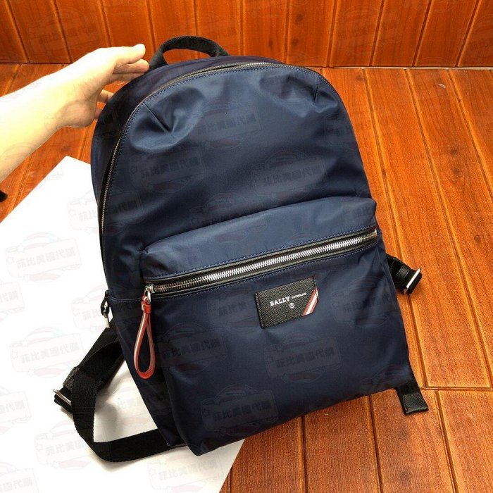 優寶購物《ubao.Tw》特貨品商城,黑貓宅配,取貨付款,100%原廠BALLY 巴利?經典LOGO 三角斜紋 尼龍材質 防潑水 容量大 時尚雙肩後背包 深藍色 | Yahoo拍賣