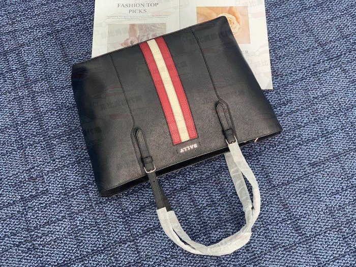 優寶購物《ubao.Tw》特貨品商城,黑貓宅配,取貨付款,100%原廠BALLY 貝利 金屬字樣 牛皮 十字紋 紅白條紋 拉鏈內袋 手提 單肩托特包 黑色 | Yahoo拍賣