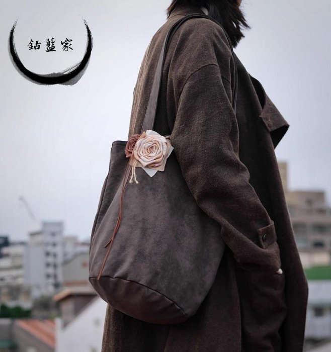 優寶購物《ubao.Tw》特貨品商城,黑貓宅配,取貨付款,【鈷藍家】麂皮絨水桶包 復古磨砂做舊美拉德大容量花朵單肩包 | Yahoo拍賣