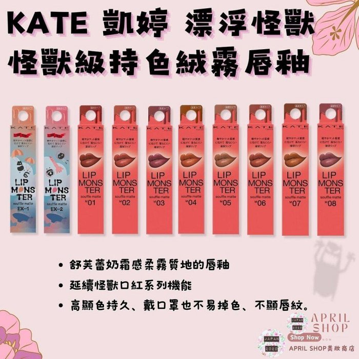 優寶購物《ubao.Tw》特貨品商城,黑貓宅配,取貨付款,【KATE 凱婷 怪獸級持色絨霧唇釉 漂浮怪獸 EX-1~2 M01~M08】現貨 日本境內版 限量新色 | Yahoo拍賣