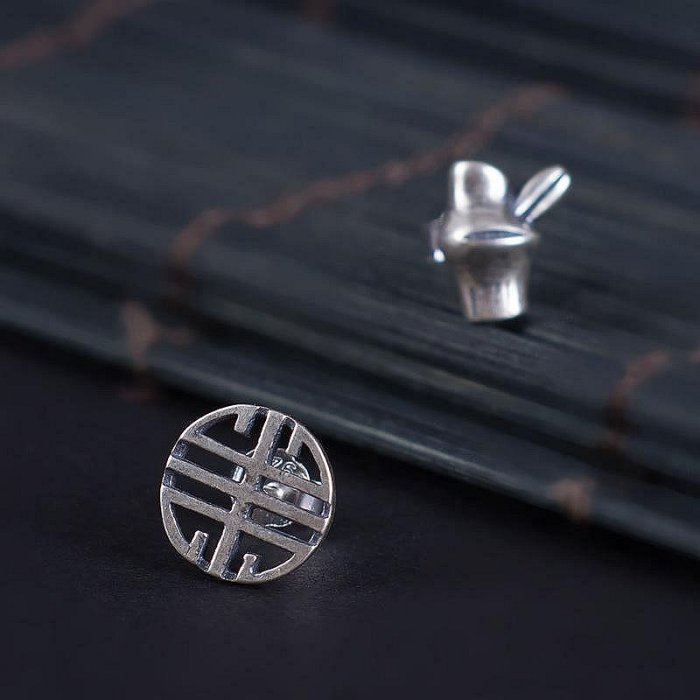 優寶購物《ubao.Tw》特貨品商城,黑貓宅配,取貨付款,星星館 s925銀民族風泰銀竹節壽紋不對稱耳釘女國風復古做舊耳飾YT | Yahoo拍賣