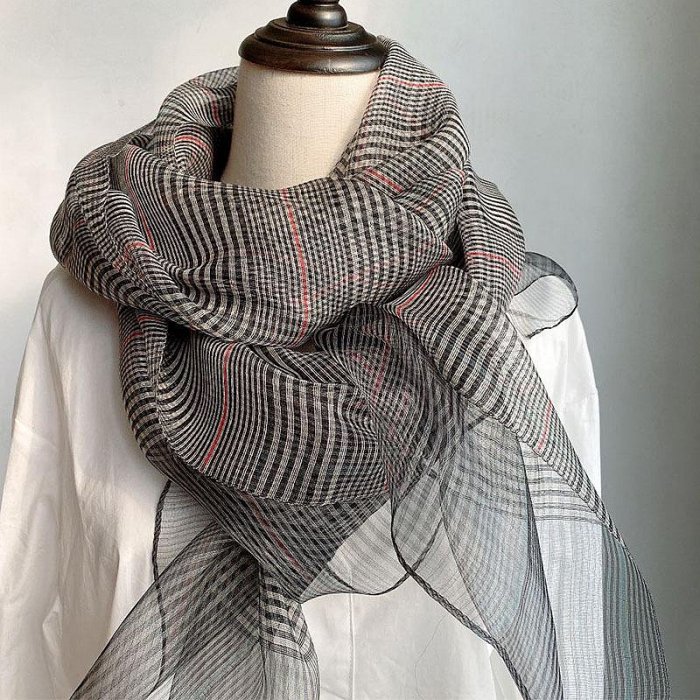 優寶購物《ubao.Tw》特貨品商城,黑貓宅配,取貨付款,輕熟真絲混紡格子百搭長款桑蠶絲絲巾披肩防曬春秋薄款圍巾女秋冬╭☆ Queen☆like* 嚴選女裝 #50009 | Yahoo拍賣