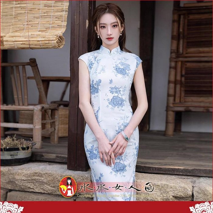 優寶購物《ubao.Tw》特貨品商城,黑貓宅配,取貨付款,藍色淑女范旗袍春夏季新款氣質優雅日常可穿改良新中式少女感連身裙洋裝-青蕭-水水女人國 | Yahoo拍賣