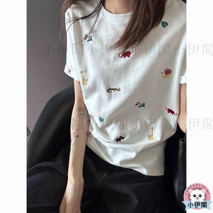 優寶購物《ubao.Tw》特貨品商城,黑貓宅配,取貨付款,小伊閣=白色童趣小動物刺繡短袖T恤女夏新款小個子休閑寬松正肩上衣=上衣*短t*打底衫*一字領t*雪紡*襯衫*蕾絲 | Yahoo拍賣