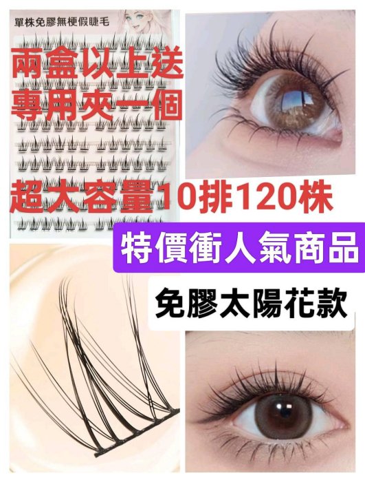 優寶購物《ubao.Tw》特貨品商城,黑貓宅配,取貨付款,(台灣現貨)AK單株免膠(太陽花款)假睫毛分段自黏無需膠水單根嫁接自然超大容量10排120株防水防汗 | Yahoo拍賣