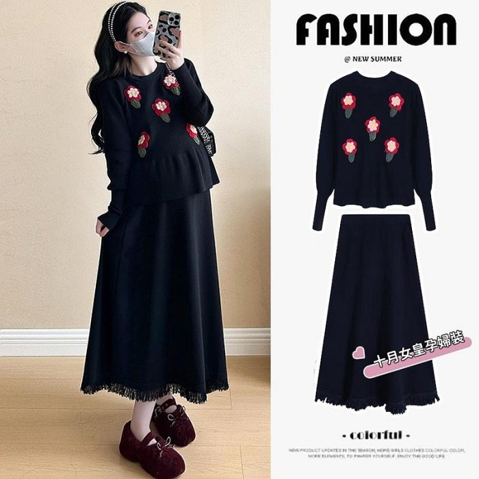 優寶購物《ubao.Tw》特貨品商城,黑貓宅配,取貨付款,秋冬孕婦裝加厚韓版針織花朵上衣+針織半身裙兩件套時尚孕婦洋裝針織孕婦裙子 | Yahoo拍賣