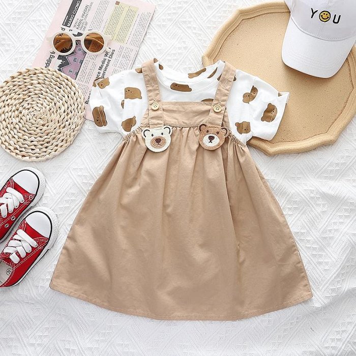 優寶購物《ubao.Tw》特貨品商城,黑貓宅配,取貨付款,新款嬰兒服裝女嬰衣服套裝短袖小熊印花 T 恤卡通圍兜褲 2 件/套兒童休閒裝 | Yahoo拍賣