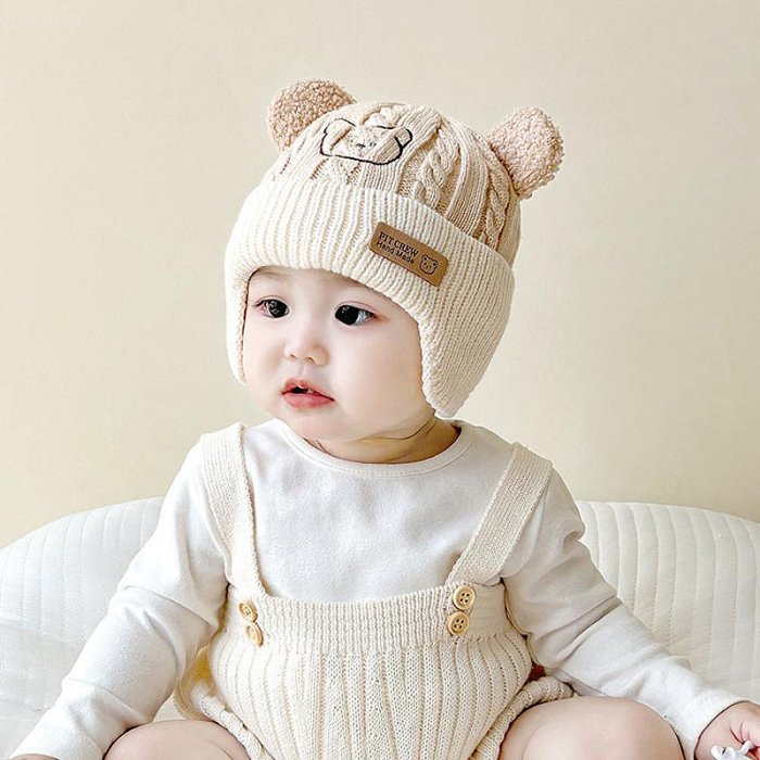 優寶購物《ubao.Tw》特貨品商城,黑貓宅配,取貨付款,【滿199出貨 熱銷款】 寶寶帽子 兒童帽子 護耳帽 保暖帽 防風帽 嬰兒帽子可愛小熊寶寶毛綫帽韓版月齡針織護耳帽保暖帽 | Yahoo拍賣