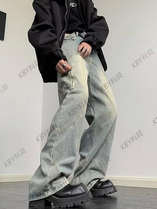 優寶購物《ubao.Tw》特貨品商城,黑貓宅配,取貨付款,牛仔褲男秋冬美式復古水洗黃泥高街潮牌寬松直筒休閑拼接闊腿長褲【KBY科貝】 | Yahoo拍賣