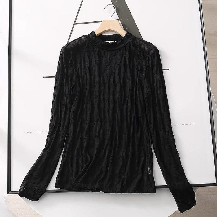 優寶購物《ubao.Tw》特貨品商城,黑貓宅配,取貨付款,=86號店=預購歐美 轻薄軟彈薄款透視肌理感蕾絲面料 半高領合身顯瘦 女上衣 如圖色 | Yahoo拍賣