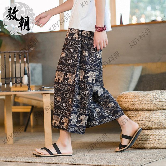 優寶購物《ubao.Tw》特貨品商城,黑貓宅配,取貨付款,泰國大象沙灘短褲男中國風寬松亞麻七分褲大碼胖子潮流闊腿直筒褲【KBY科貝】 | Yahoo拍賣