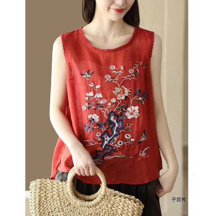 優寶購物《ubao.Tw》特貨品商城,黑貓宅配,取貨付款,新貨新款復古重工刺繡蕾絲小背心100支細苧麻無袖衫背心上衣 滿599元免運 | Yahoo拍賣