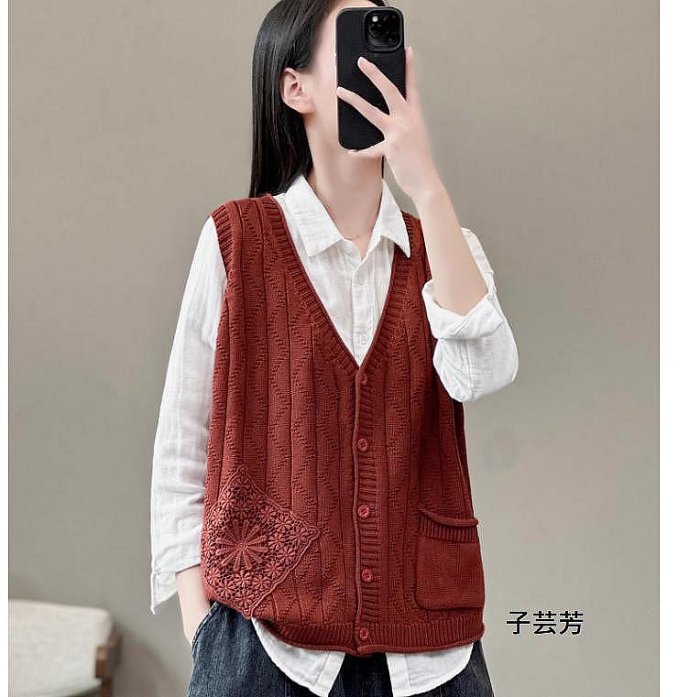 優寶購物《ubao.Tw》特貨品商城,黑貓宅配,取貨付款,新貨新款復古文藝風純色蕾絲鉤花開襟馬甲百搭顯瘦棉線針織背心 滿599元免運 | Yahoo拍賣